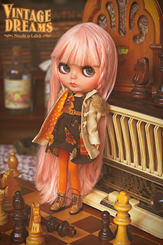 The 3rd set in the "Vintage Dreams" collection includes:Blouse, cardigan, patterned skirt and stockings.